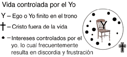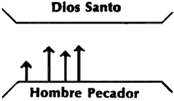 Este diagrama ilustra que Dios es santo y que el hombre es pecador. Un gran abismo lo separa. Las flechas señalan que el hombre está tratando continuamente de alcanzar a Dios para establecer una relación personal con El a través de sus propios esfuerzos, tales como vivir una buena vida, filosofía o religión---pero siempre falla en su intento.